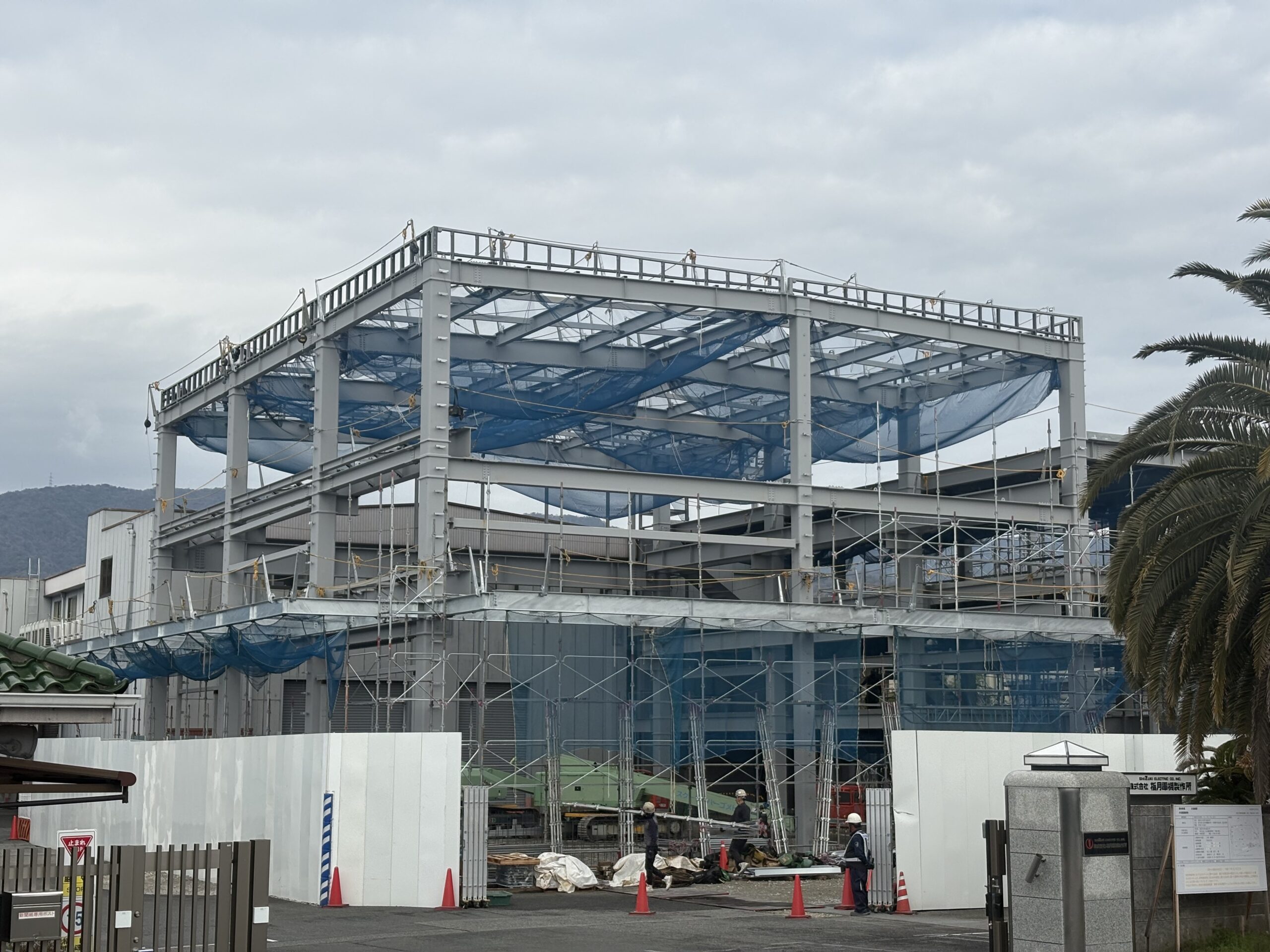 画像は、市街地の「S造3F(鋼材量200t規模)の工事現場事例」です。